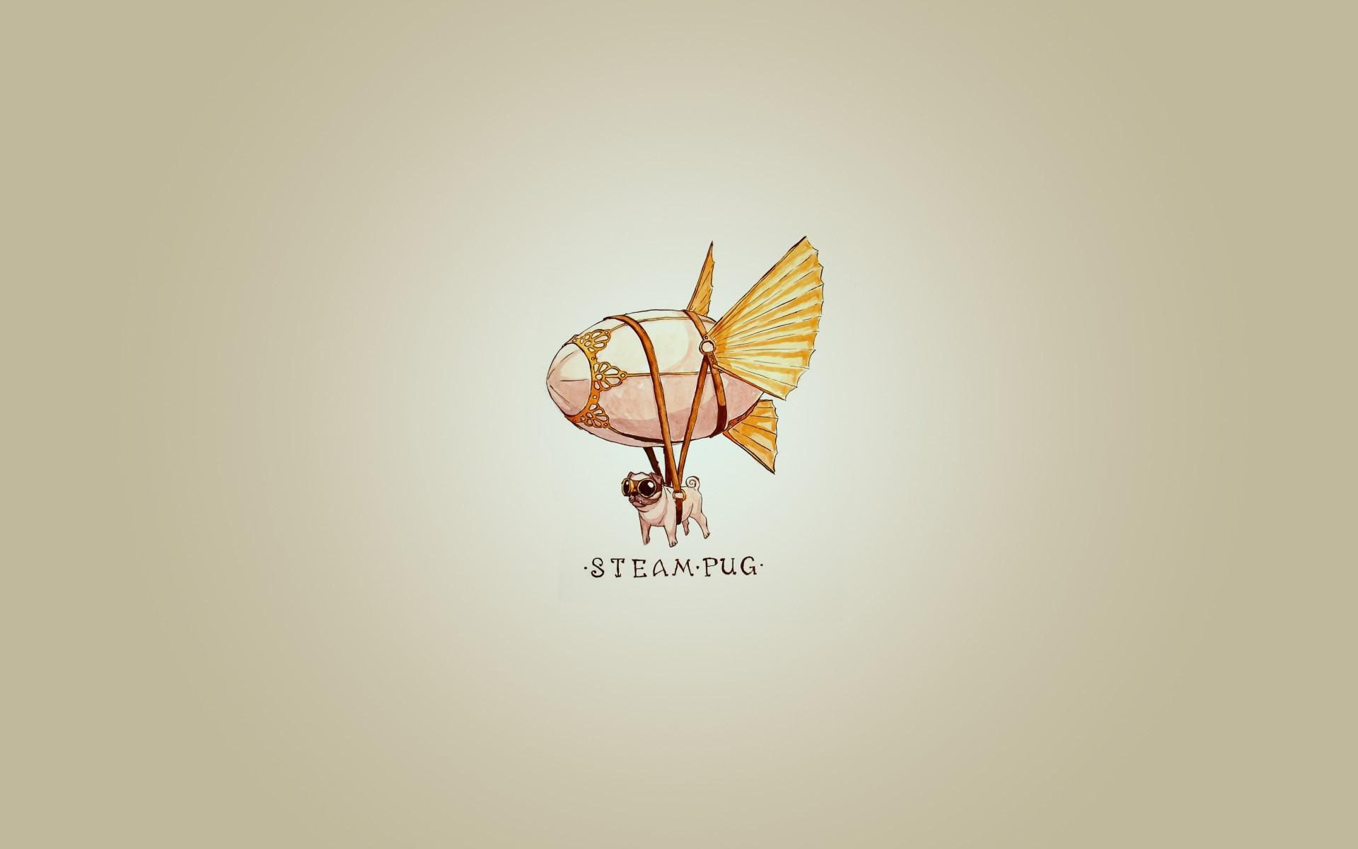 Wallpaper Pug on the airship, gray background