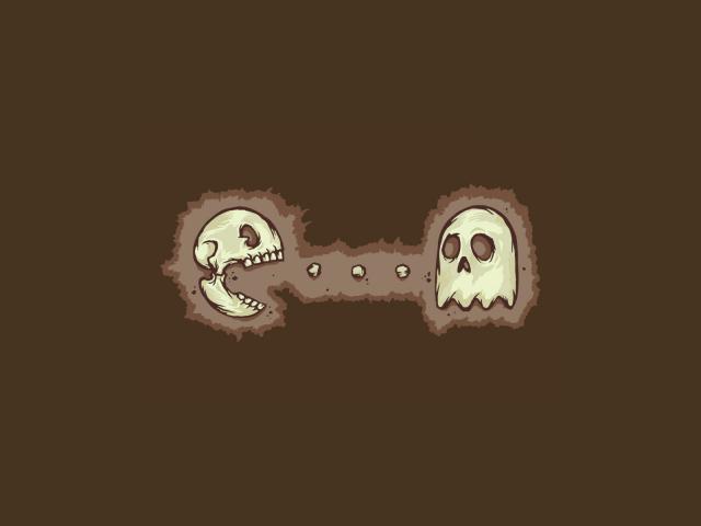 Wallpaper Skull and Pacman, brown background
