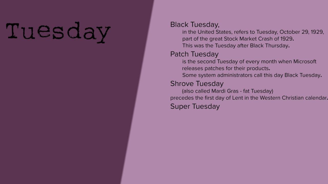 Wallpaper Tuesday description in English