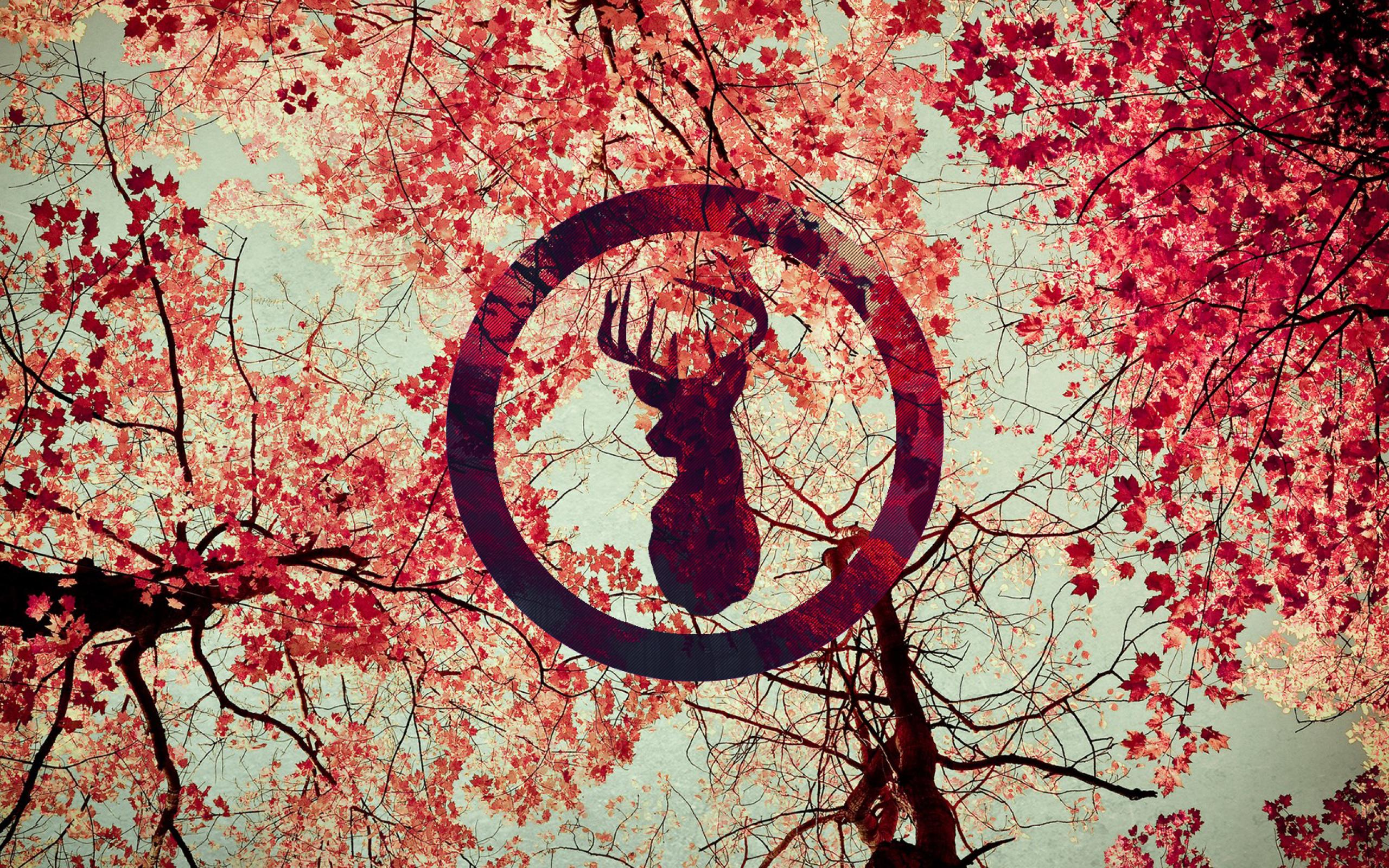 Wallpaper Silhouette of a deer on a background of autumn leaves
