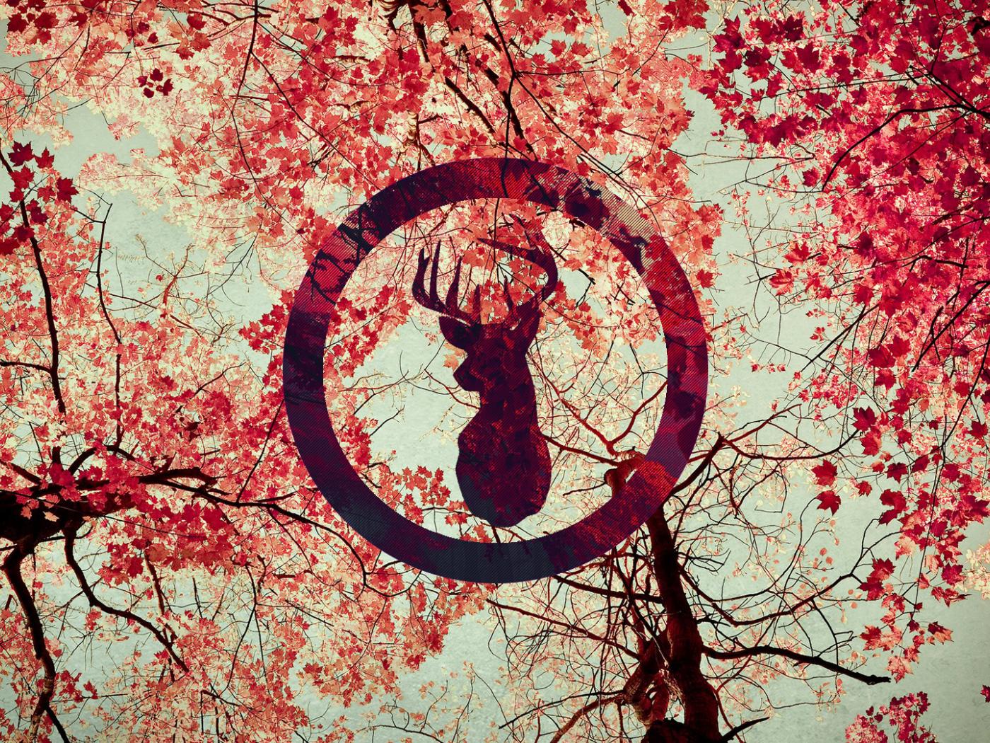 Wallpaper Silhouette of a deer on a background of autumn leaves