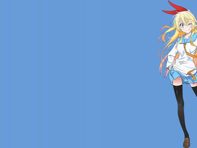 Wallpaper Anime girl winks, blue background