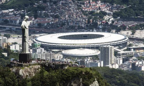 Wallpaper Statue of Christ on a background of the stadium at the World Cup in Brazil 2014