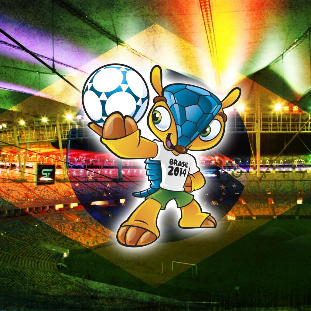 Wallpaper Talisman World Cup in Brazil in 2014 against the backdrop of the stadium
