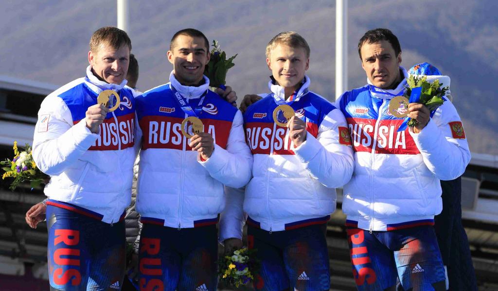 Wallpaper Four Russian bobsleigh gold at the Olympic Games in Sochi 2014