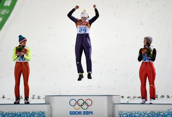 Wallpaper Carina Vogt German athlete in ski jumping gold medalist in Sochi