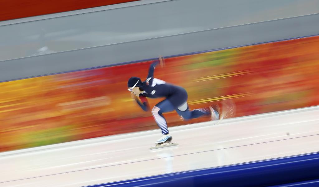 Wallpaper Korean gold medalist speed skater Sang-Hwa Lee at the Olympic Games in Sochi
