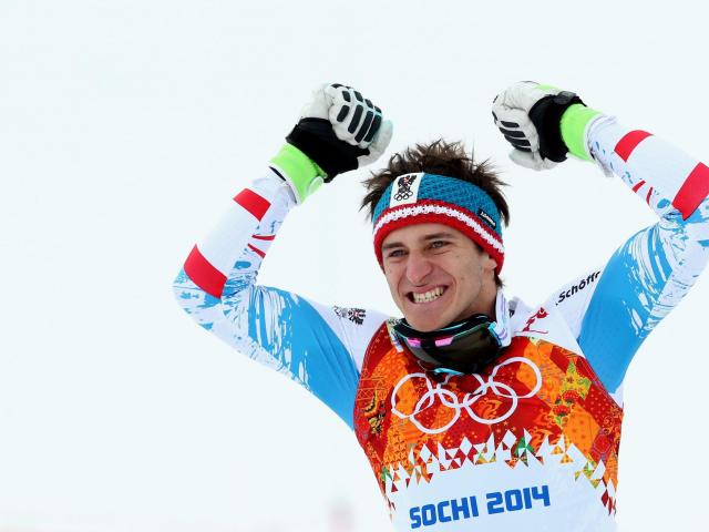 Wallpaper Gold medalist Austrian skier Matthias Meyer at the Olympic Games in Sochi