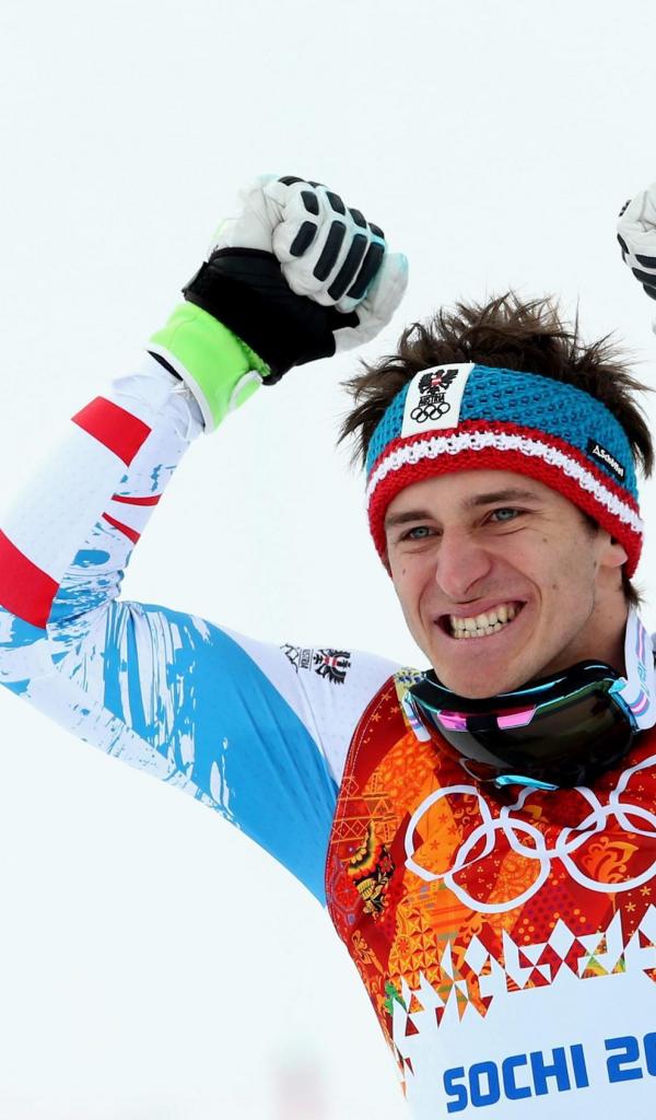 Wallpaper Gold medalist Austrian skier Matthias Meyer at the Olympic Games in Sochi