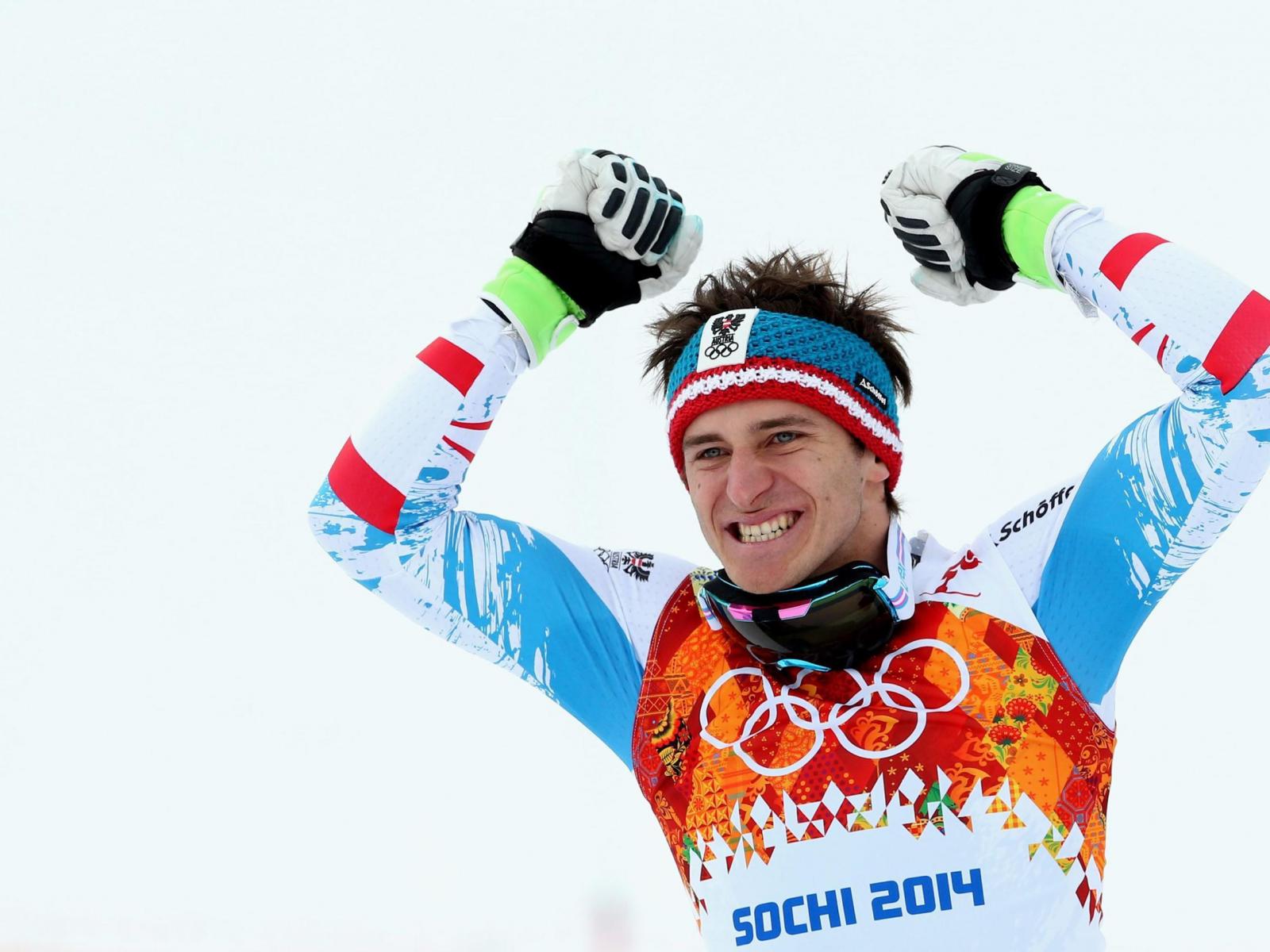 Wallpaper Gold medalist Austrian skier Matthias Meyer at the Olympic Games in Sochi