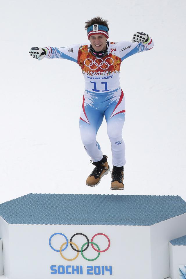 Wallpaper Gold medalist Austrian skier Matthias Meyer at the Olympic Games in Sochi