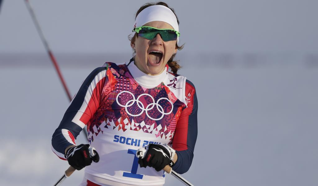Wallpaper Maiken Falla of Norway Kaspersen gold medal at the Olympic Games in Sochi 2014