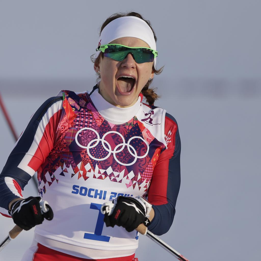 Wallpaper Maiken Falla of Norway Kaspersen gold medal at the Olympic Games in Sochi 2014