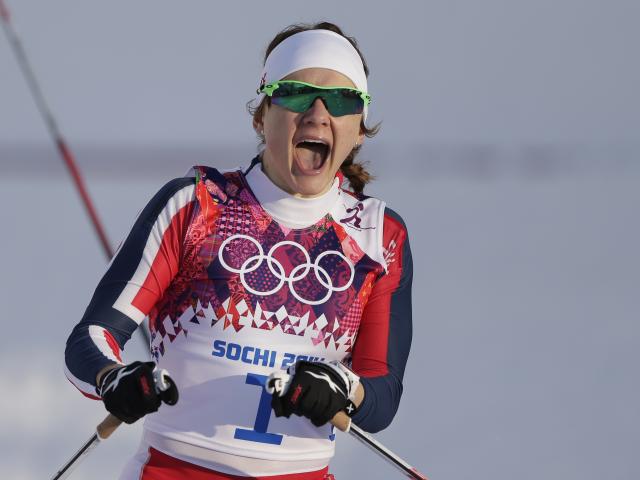 Wallpaper Maiken Falla of Norway Kaspersen gold medal at the Olympic Games in Sochi 2014