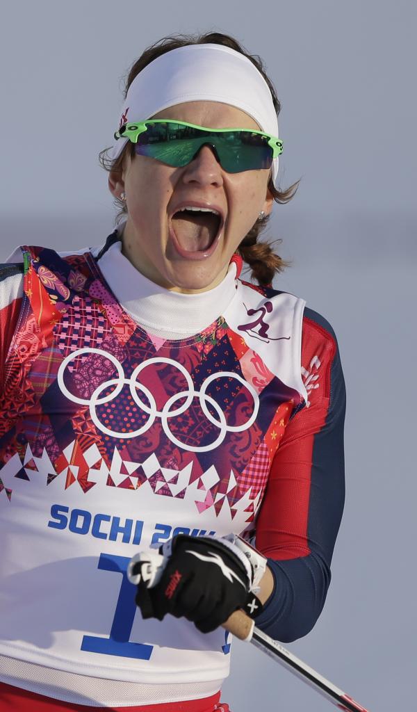 Wallpaper Maiken Falla of Norway Kaspersen gold medal at the Olympic Games in Sochi 2014
