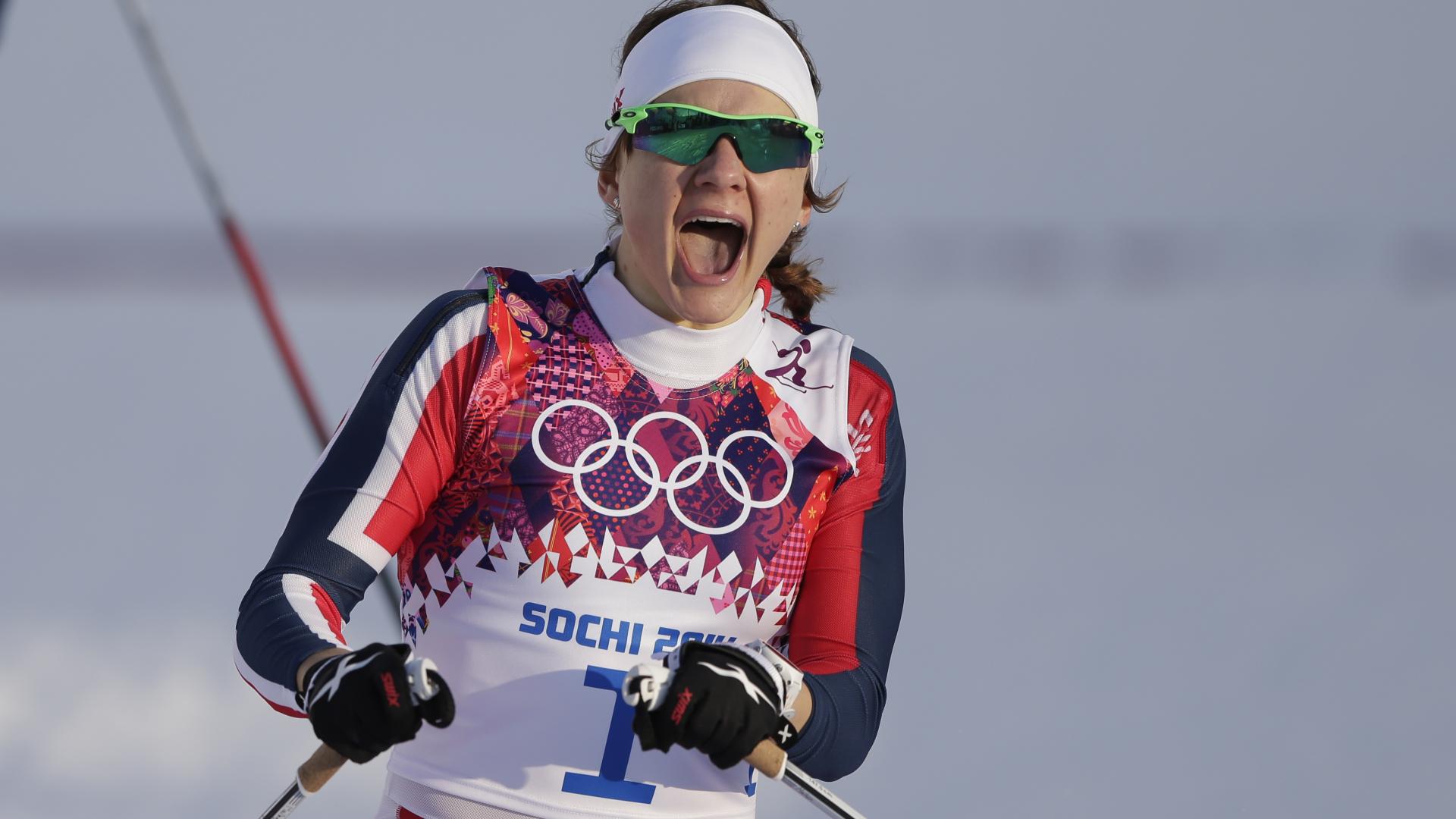 Wallpaper Maiken Falla of Norway Kaspersen gold medal at the Olympic Games in Sochi 2014