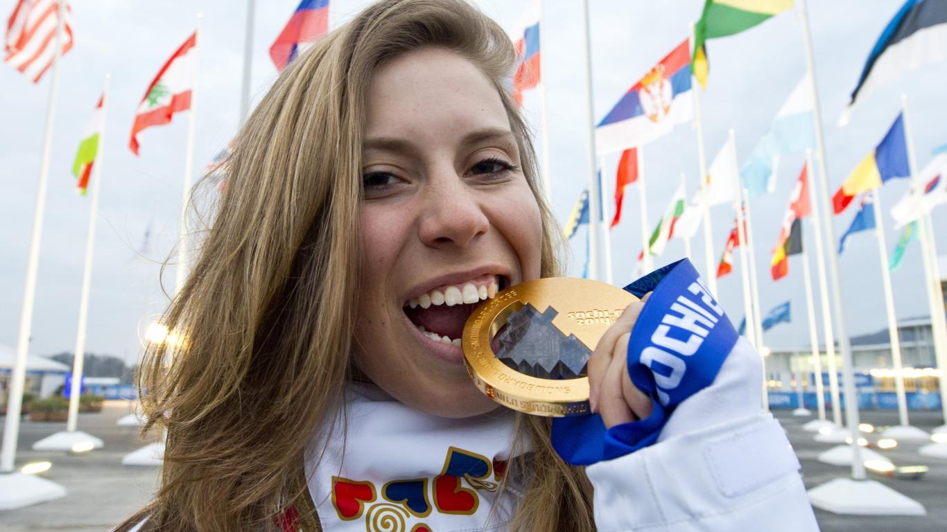 Wallpaper Eva Samkov Czech snowboarder gold medal in Sochi 2014