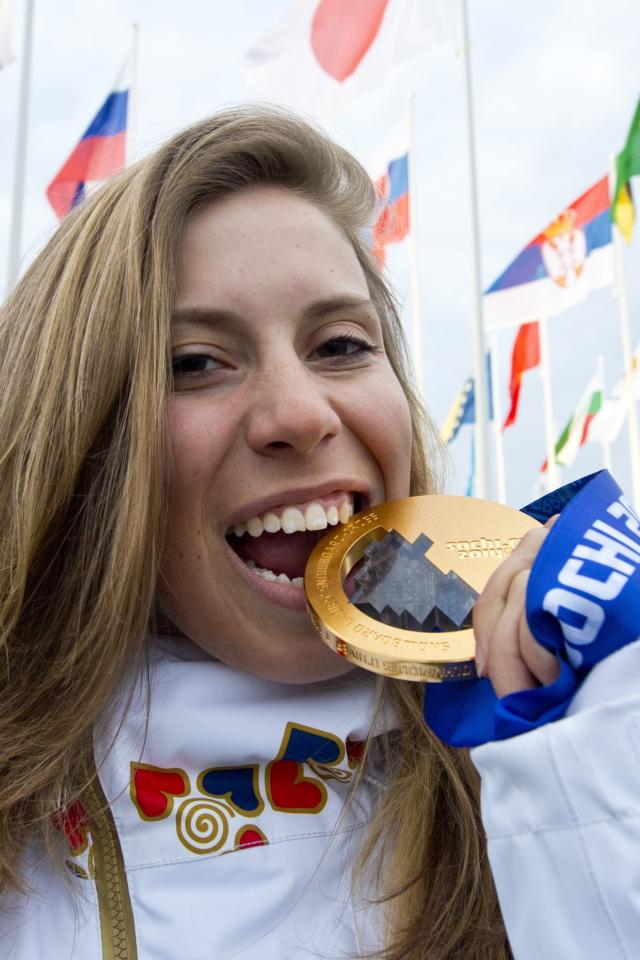 Wallpaper Eva Samkov Czech snowboarder gold medal in Sochi 2014