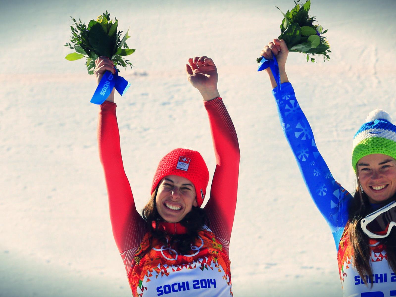 Wallpaper Dominique Geesin Swiss gold medal in Sochi 2014