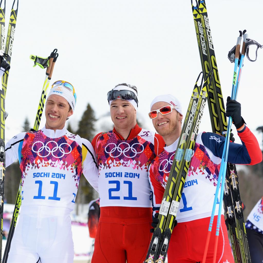 Wallpaper A gold and silver medal Swedish ski racer Markus Helner in Sochi