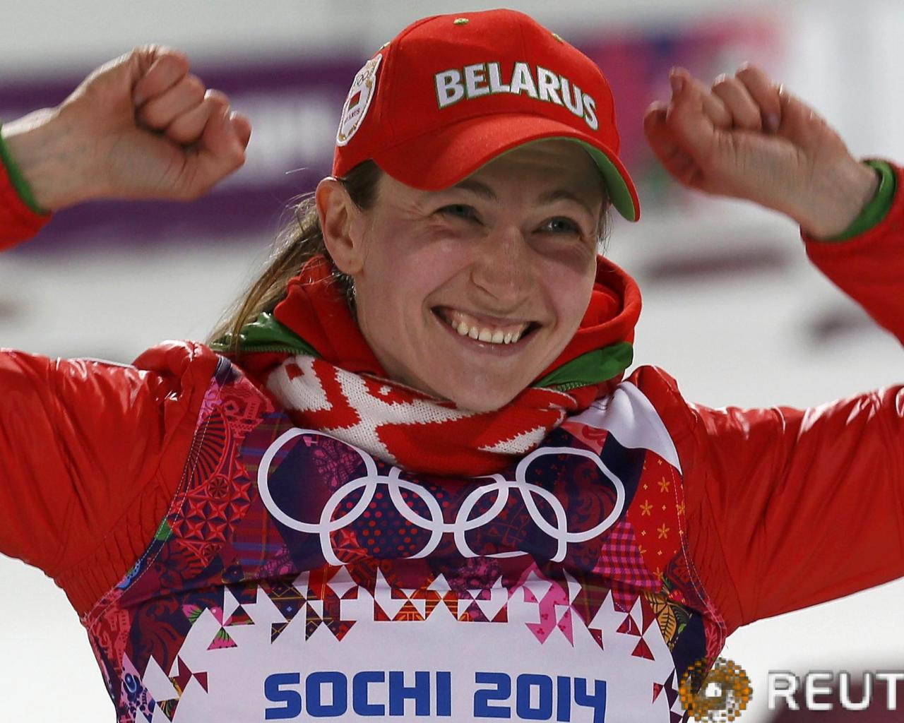 Wallpaper The winner of gold medals Belarusian biathlete Darya Domracheva in Sochi