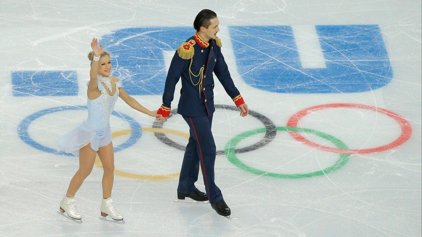 Wallpaper Russian figure skaters Tatiana Volosozhar and Maxim Trankov in Sochi