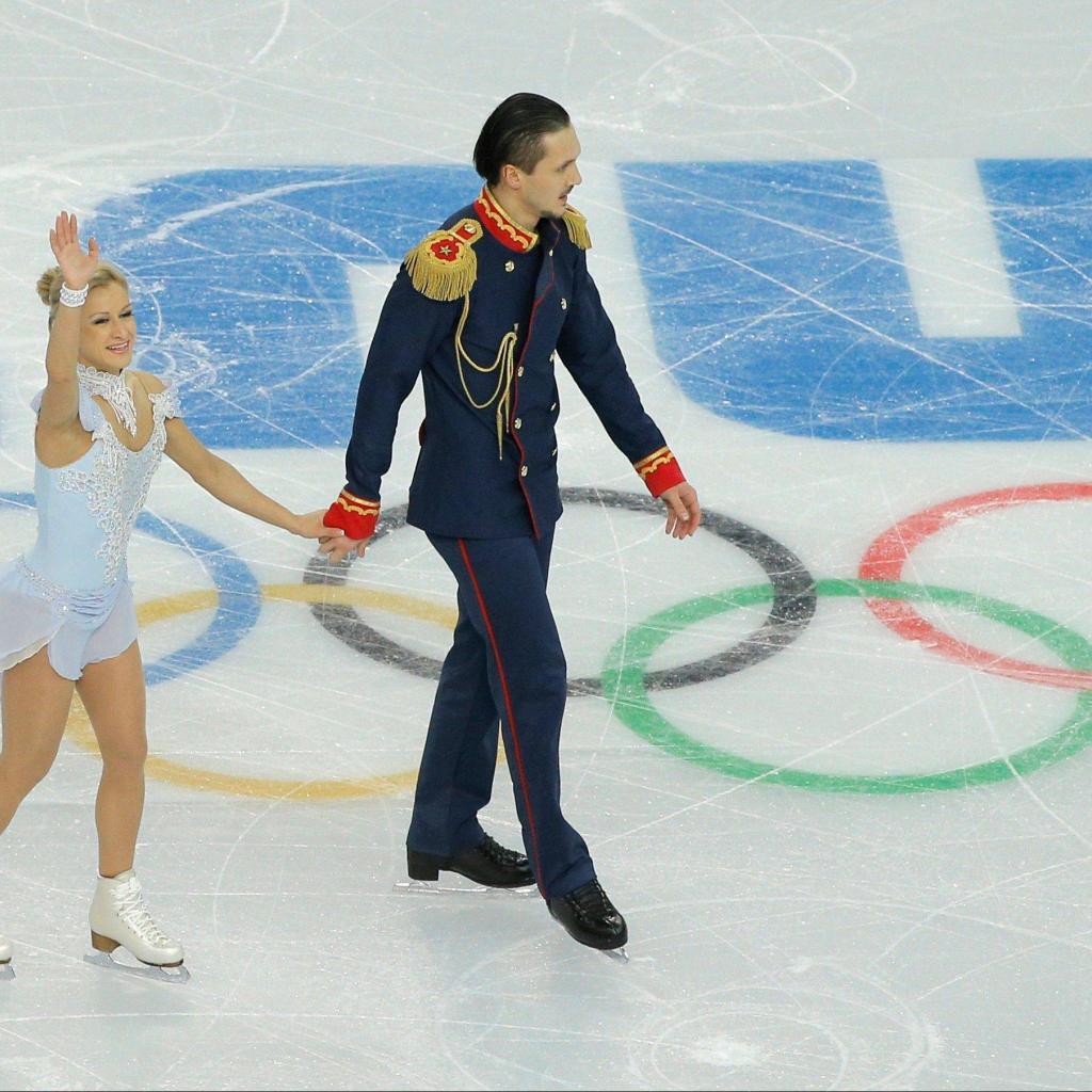 Wallpaper Russian figure skaters Tatiana Volosozhar and Maxim Trankov in Sochi