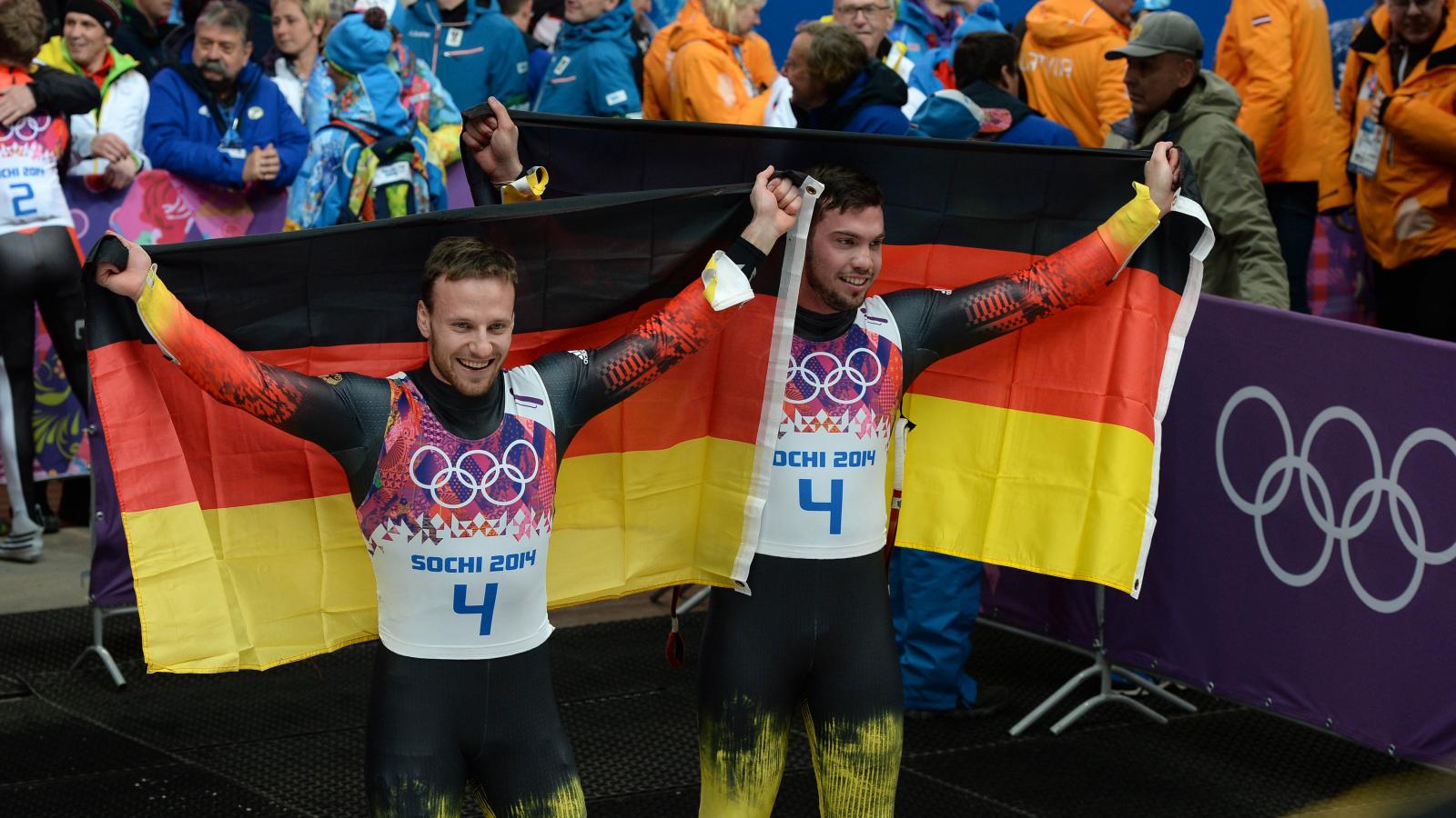Wallpaper Tobias Arlt and Tobias Vendla two gold medals in Sochi 2014
