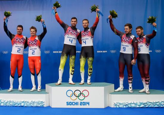 Wallpaper Tobias Arlt and Tobias Vendla German luge gold medal holders in Sochi