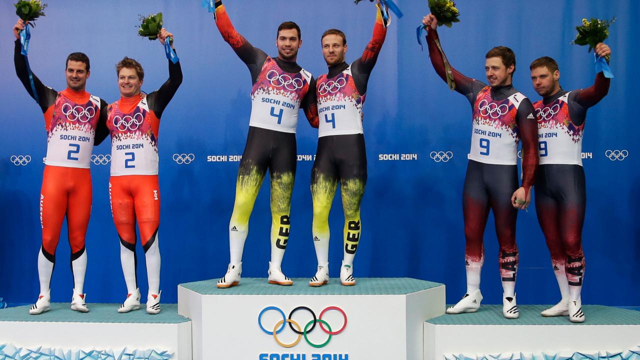 Wallpaper Tobias Arlt and Tobias Vendla German luge gold medal holders in Sochi