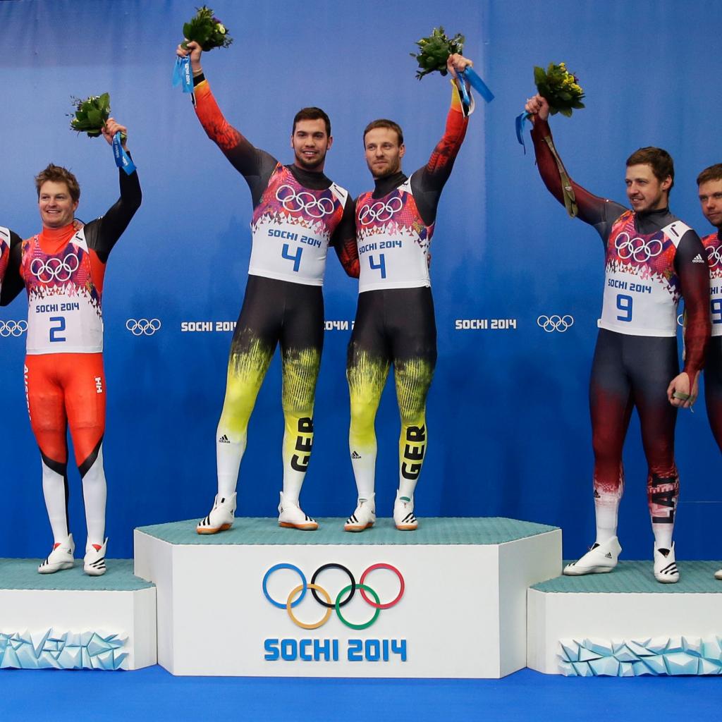 Wallpaper Tobias Arlt and Tobias Vendla German luge gold medal holders in Sochi