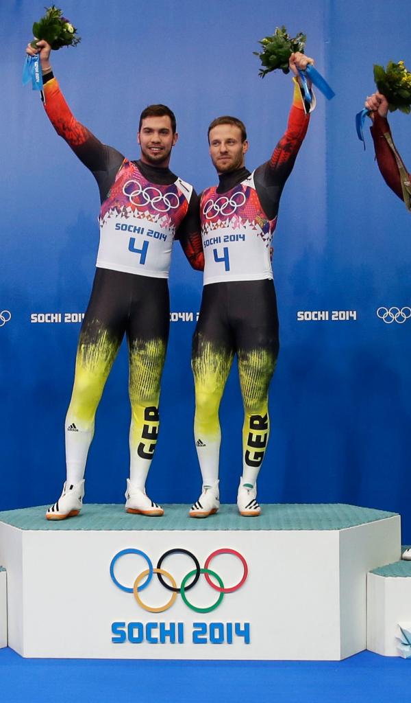 Wallpaper Tobias Arlt and Tobias Vendla German luge gold medal holders in Sochi