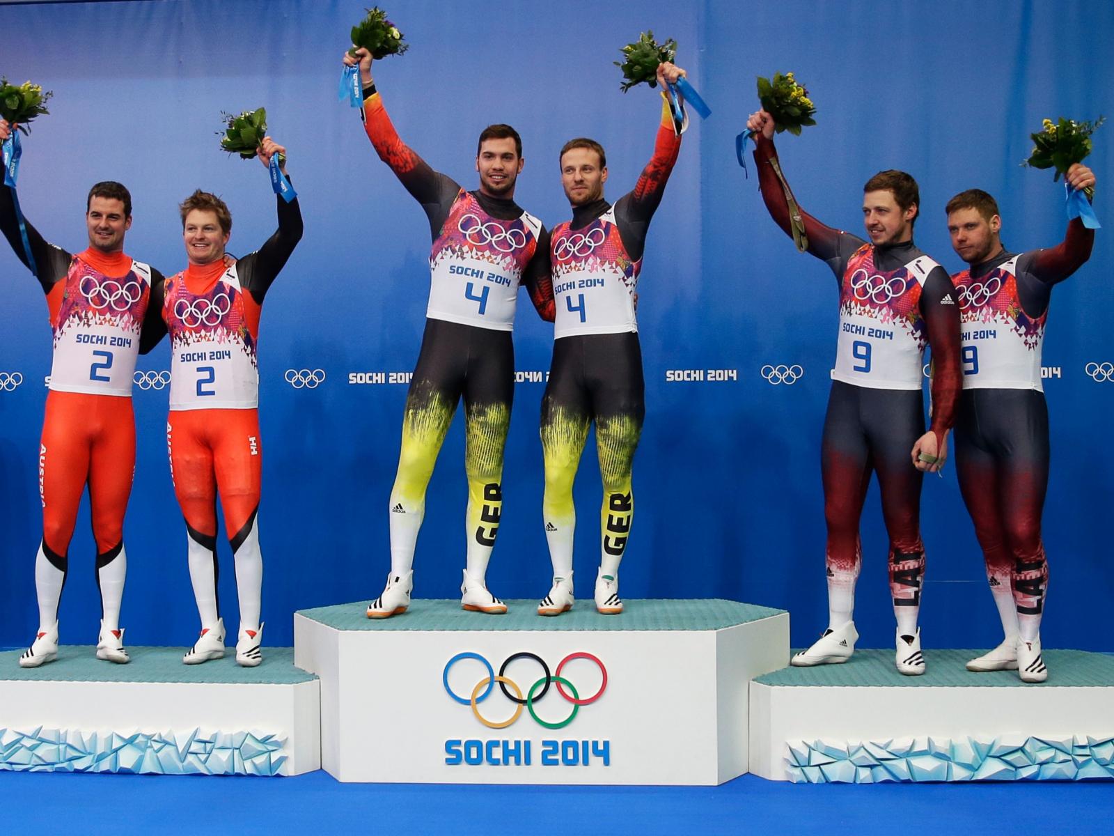 Wallpaper Tobias Arlt and Tobias Vendla German luge gold medal holders in Sochi