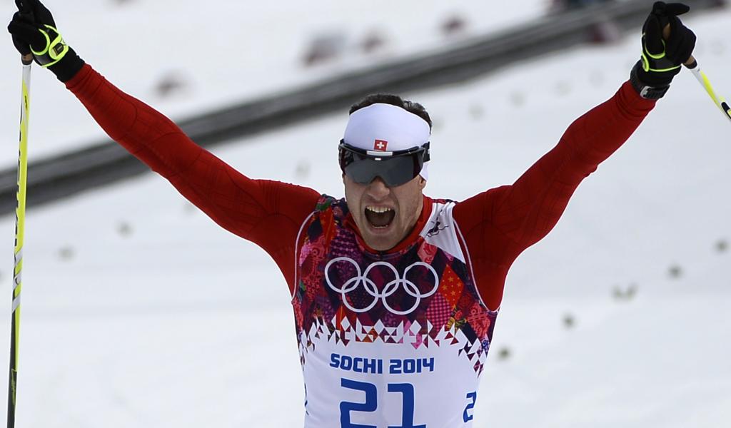 Wallpaper Dario Cologna Swiss ski racer two gold medals at the 2014