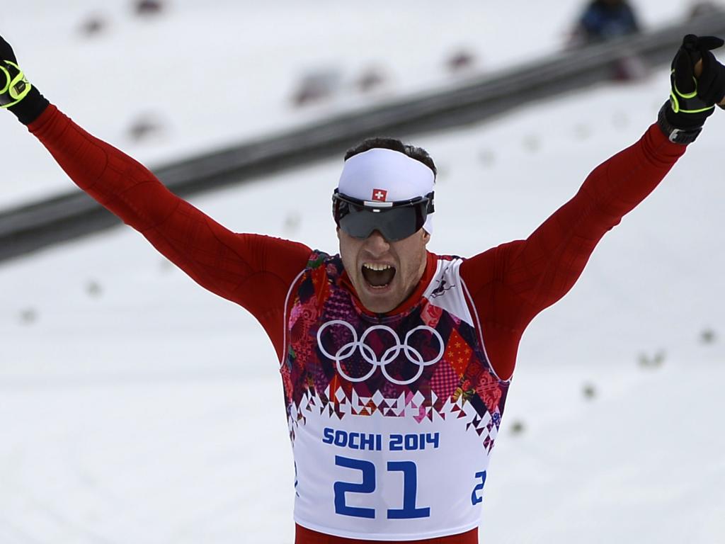 Wallpaper Dario Cologna Swiss ski racer two gold medals at the 2014