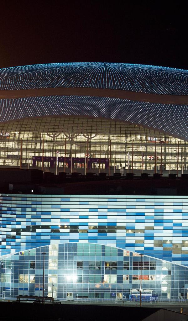 Wallpaper Olympic torch on a background of the stadium at the Olympic Games in Sochi