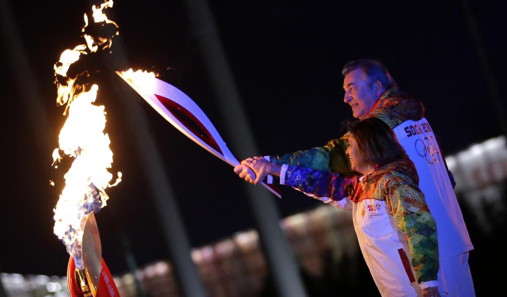 Wallpaper Vladislav Tretiak and Irina Rodnina fire is lit the Olympic Games in Sochi