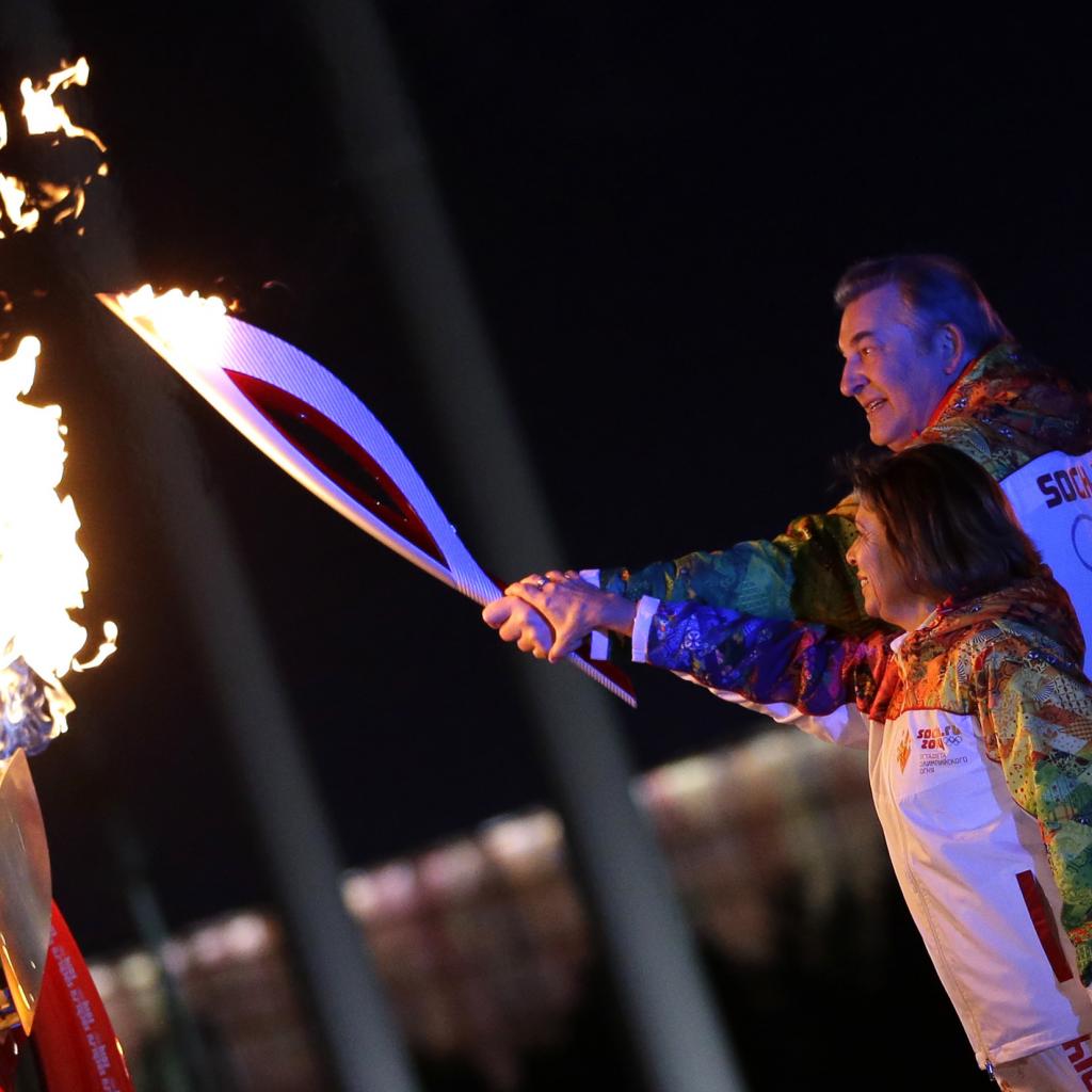 Wallpaper Vladislav Tretiak and Irina Rodnina fire is lit the Olympic Games in Sochi