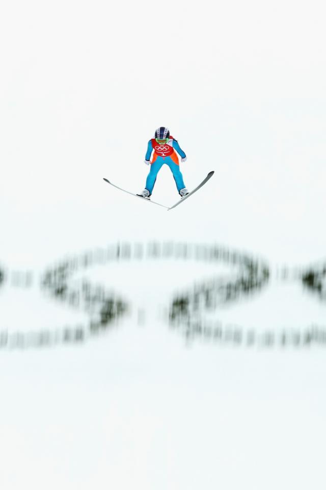 Wallpaper Athlete on the track for ski jumping in the Olympics in Sochi