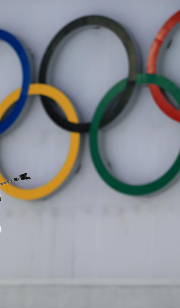 Wallpaper Biathlete on the background of the rings on the Olympic Games in Sochi
