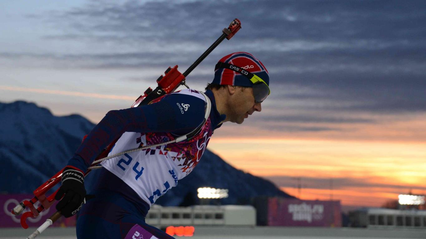 Wallpaper Biathlete on the track at the Olympic Games in Sochi