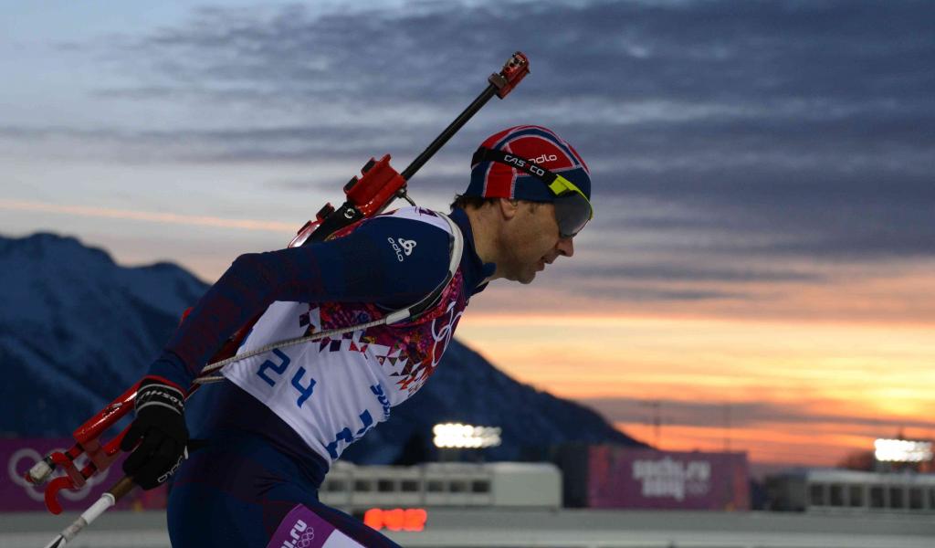 Wallpaper Biathlete on the track at the Olympic Games in Sochi