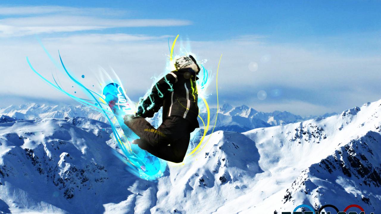 Wallpaper Snowboard mountains in the background in the Sochi 2014