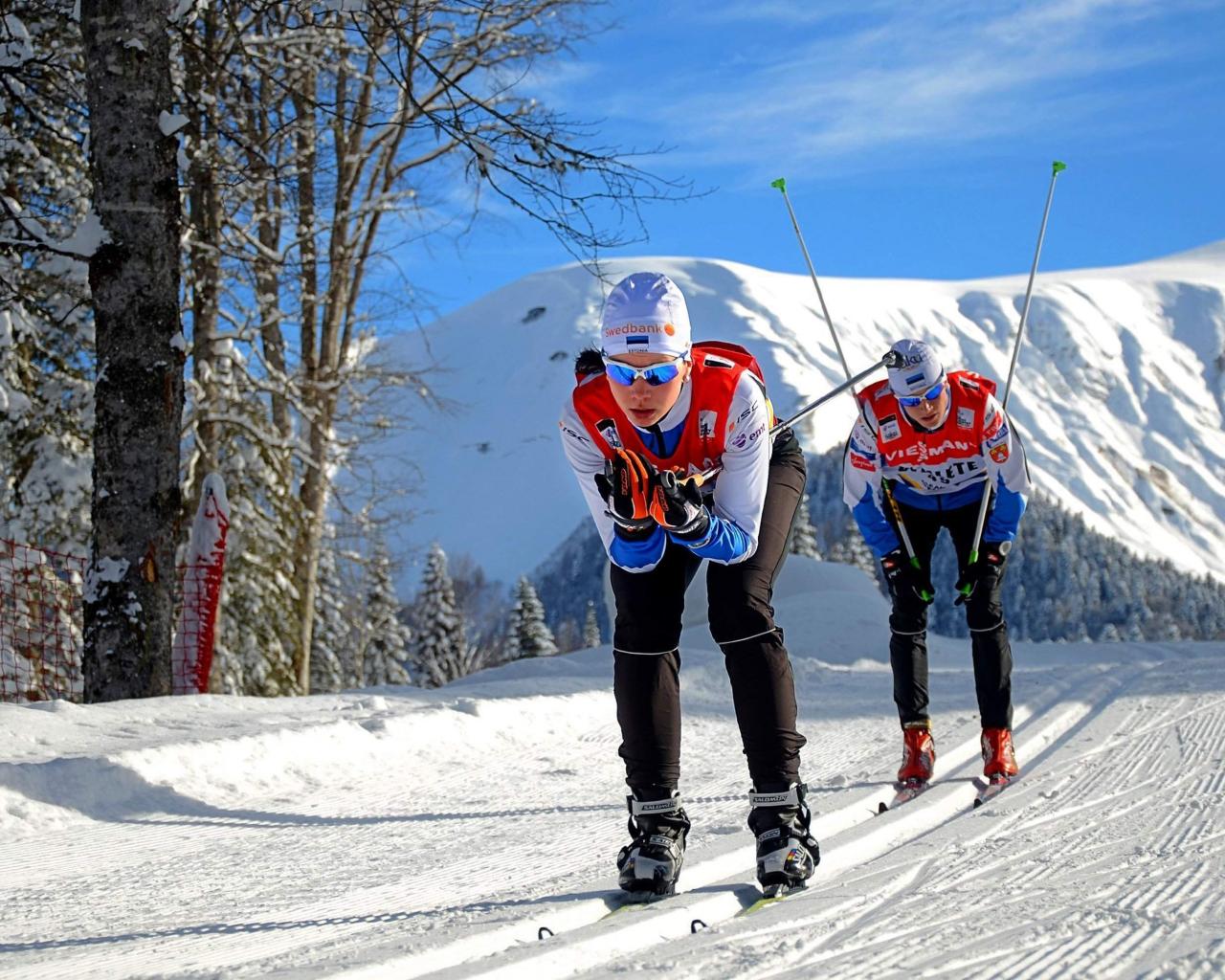 Wallpaper Skiers on the road to the ski resort of Mayrhofen, Austria