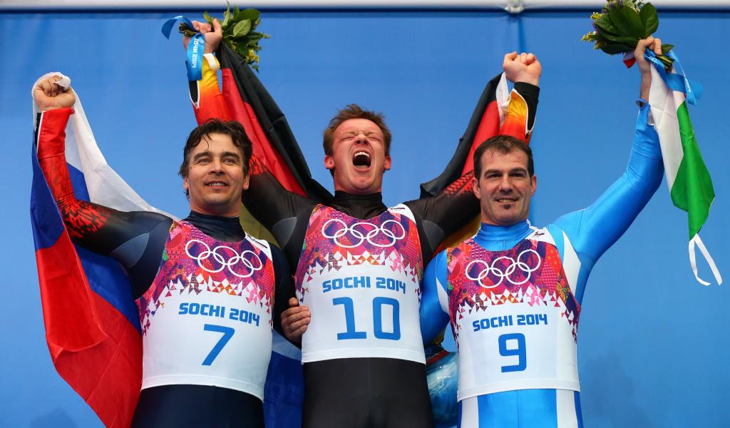 Wallpaper Bronze medalist Italian luger Armin Tsoggeler at the Olympics in Sochi
