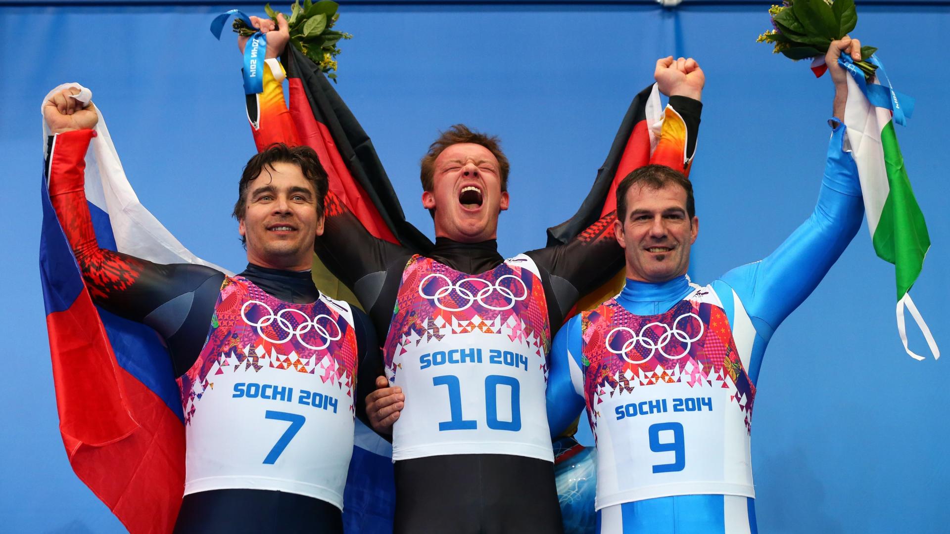 Wallpaper Bronze medalist Italian luger Armin Tsoggeler at the Olympics in Sochi