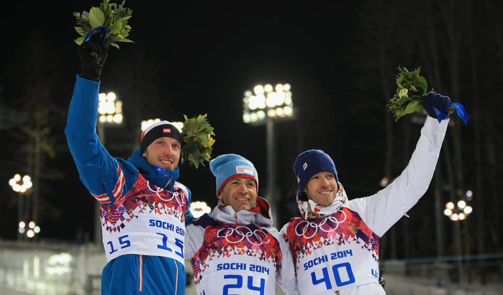 Wallpaper Silver Medalist Austrian biathlete Dominik Landertinger at the Olympics in Sochi