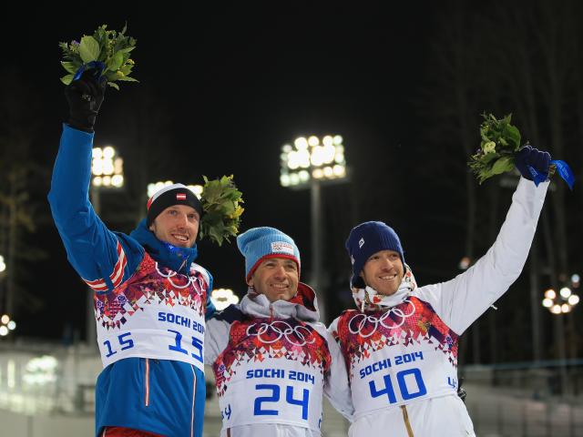 Wallpaper Silver Medalist Austrian biathlete Dominik Landertinger at the Olympics in Sochi