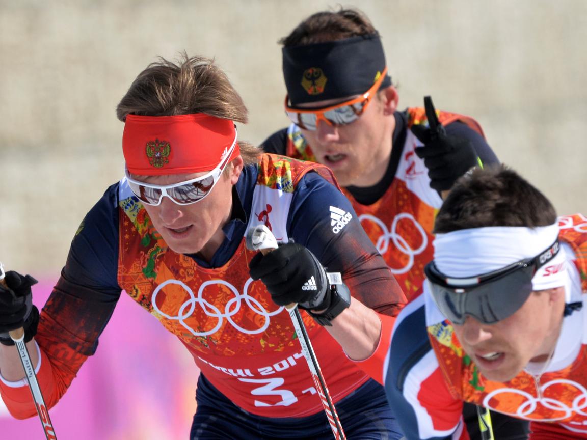 Wallpaper Russian skier Maxim Vilegzhanin gold medal in Sochi 2014