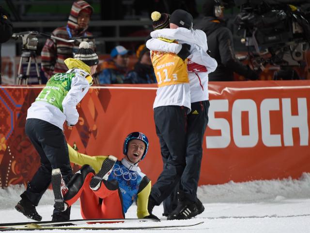 Wallpaper Zeverin Freund German ski jumper gold medal at the Olympic Games in Sochi 2014
